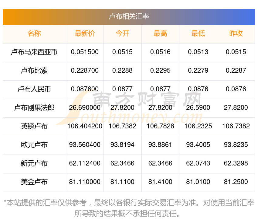 南方財(cái)富網(wǎng)為您提供盧布對(duì)茲羅提匯率最新價(jià)格詳情。