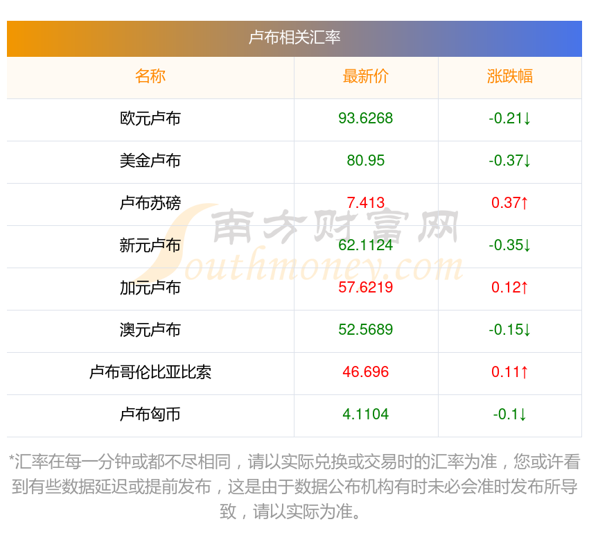 南方財富網(wǎng)為您提供盧布對蘭幣匯率最新價格詳情。