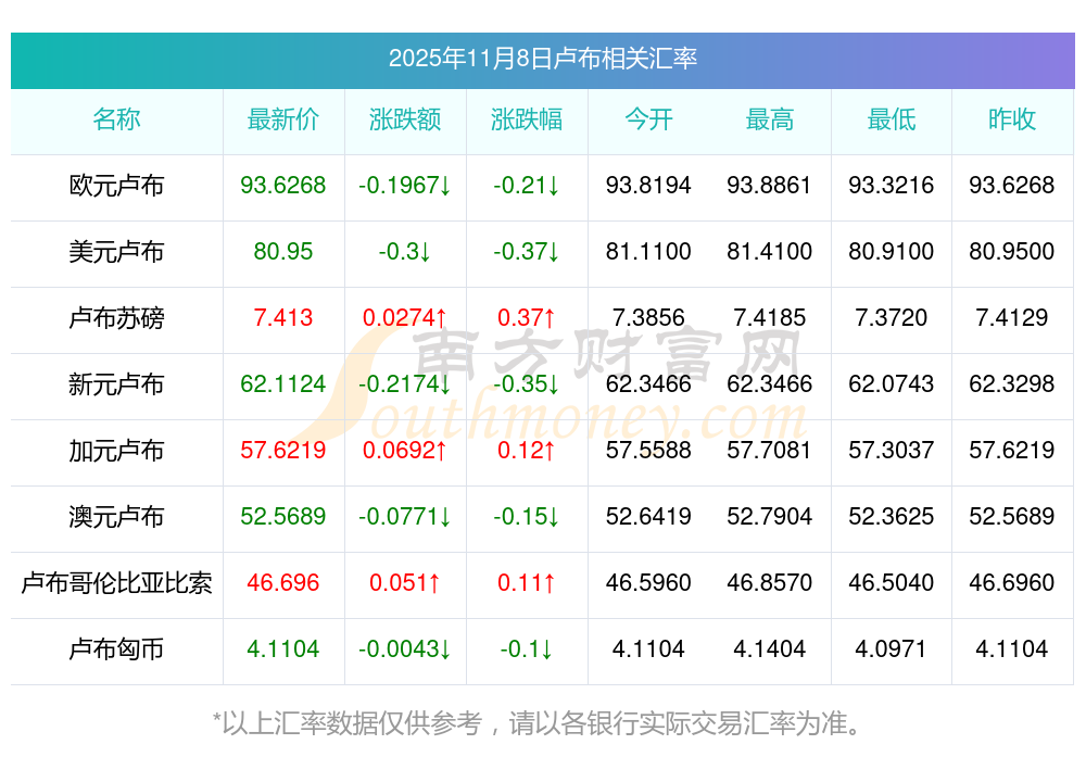 新匯率行情_今天3盧布對(duì)馬來(lái)西亞幣匯率是多少(11月8日)