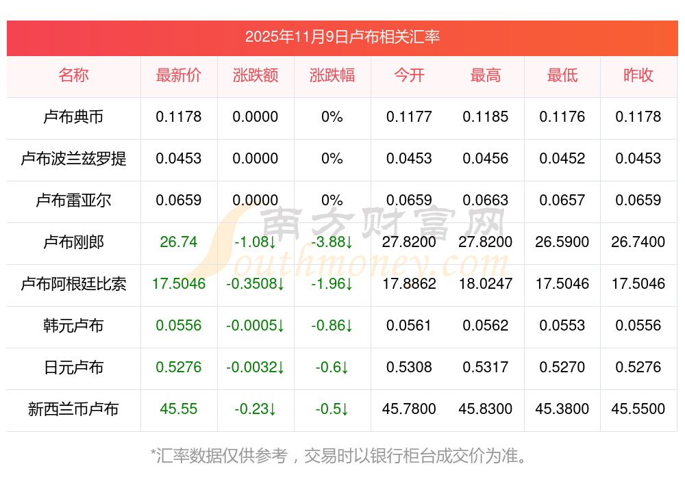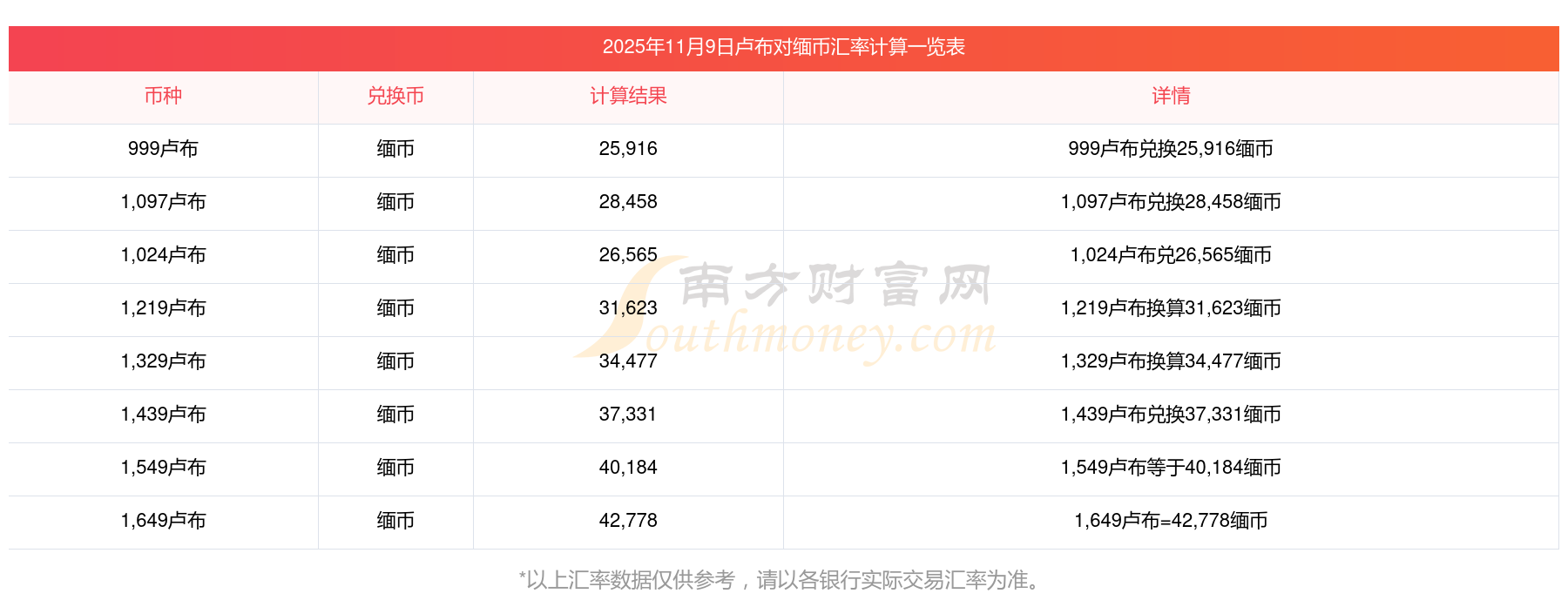 最新盧布外匯一覽 今天2025/11/9盧布兌換緬幣匯率計(jì)算