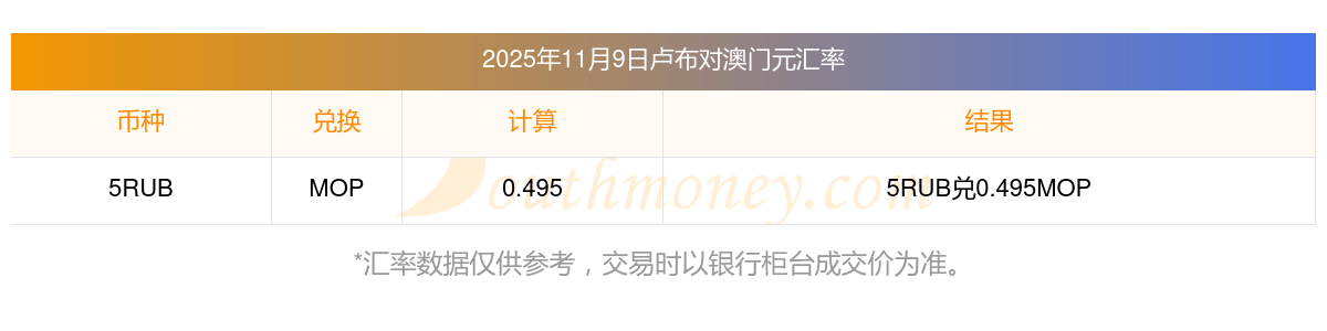 今日匯率查詢_13萬盧布對澳門元匯率又是多少? 2025/11/09