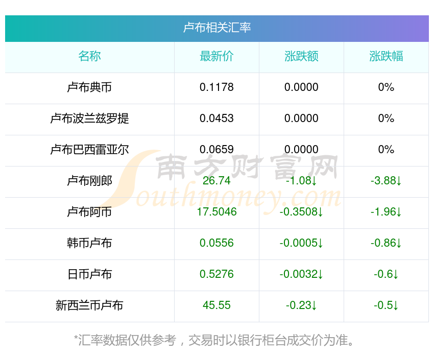 南方財富網(wǎng)為您提供盧布對澳門元匯率最新價格詳情。