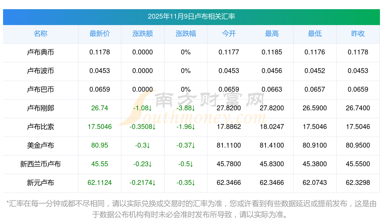 今日盧布對(duì)利幣計(jì)算匯率查詢2025年11月9日
