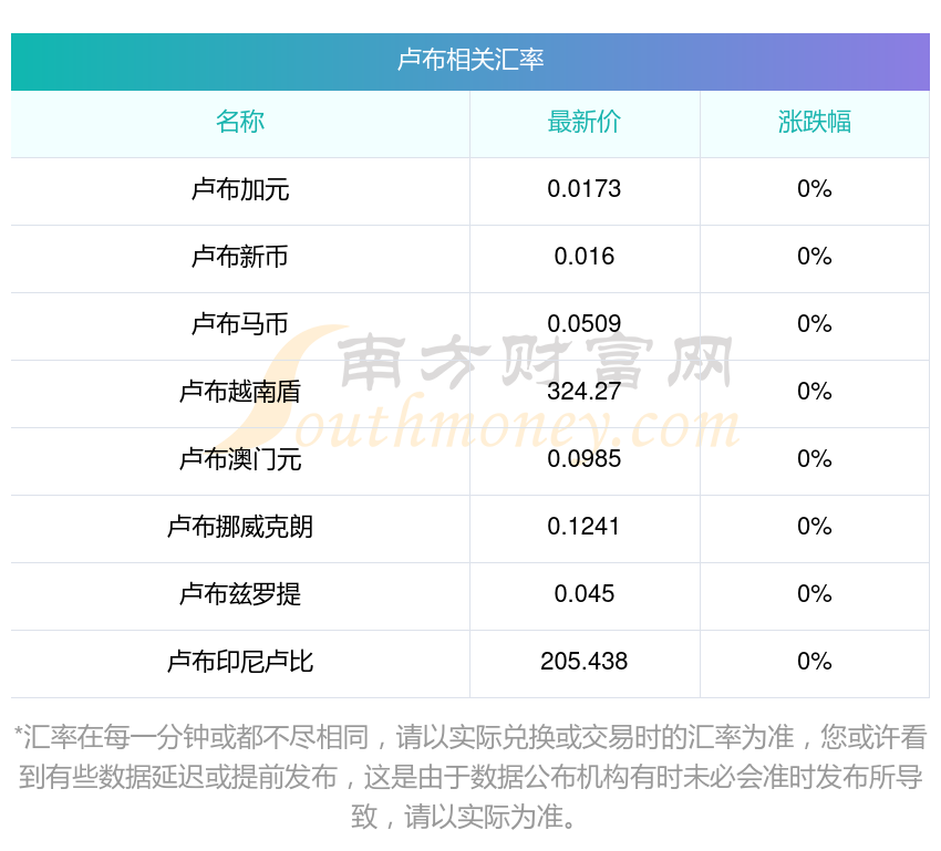 南方財富網為您提供盧布對阿根廷比索匯率最新價格詳情。