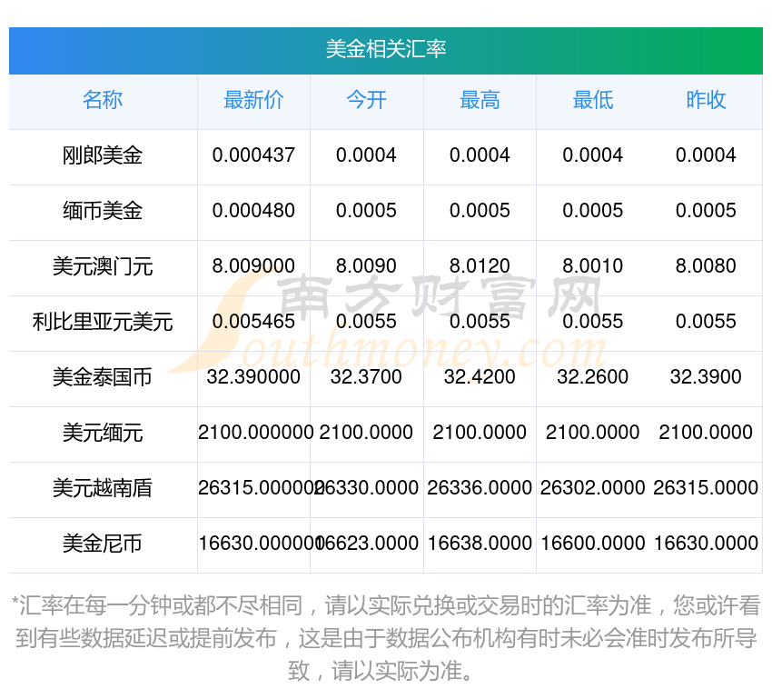 匯率數(shù)據(jù)僅供參考,交易時(shí)以銀行柜臺(tái)成交價(jià)為準(zhǔn)。