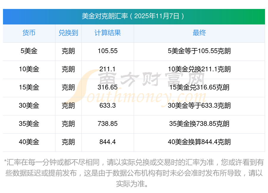 35美金兌換克朗結(jié)匯行情 今天美金匯率報(bào)價(jià)查詢2025-11-07