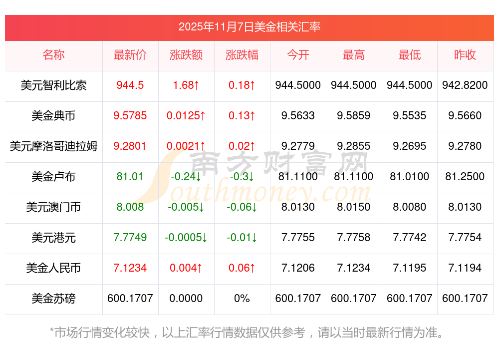 2025年11月7日美金相關(guān)匯率查詢(xún)