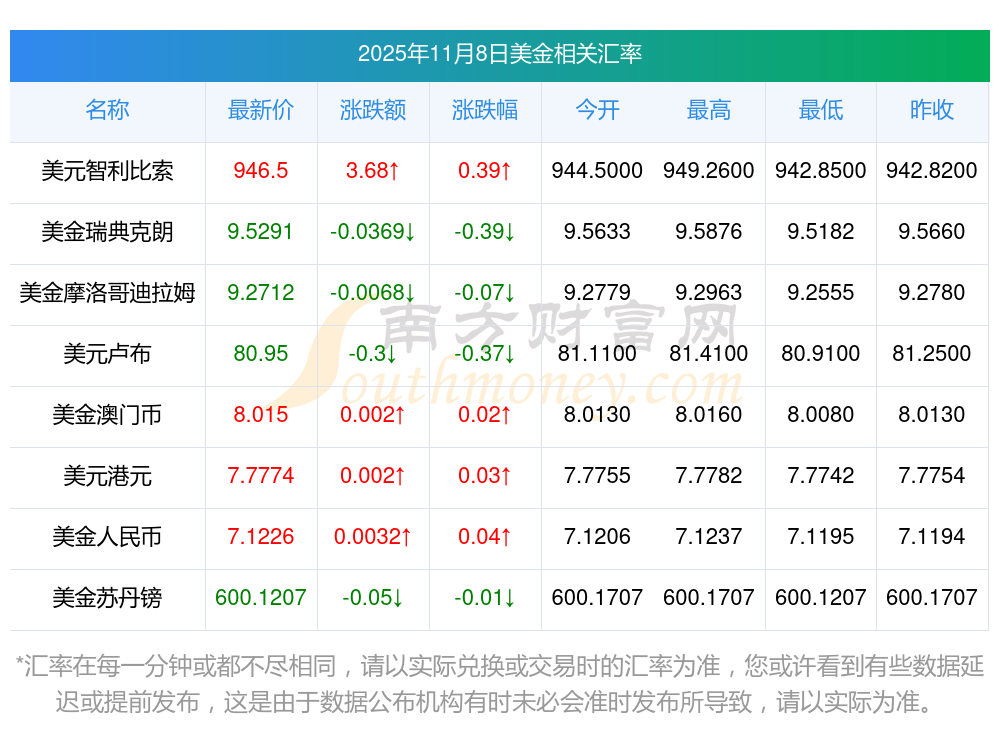 2025年11月8日美金相關(guān)匯率查詢