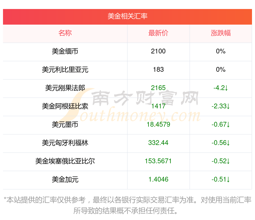 南方財富網(wǎng)為您提供美金對瑞郎匯率最新價格詳情。