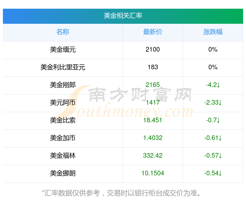 匯率數(shù)據(jù)僅供參考,交易時(shí)以銀行柜臺(tái)成交價(jià)為準(zhǔn)。