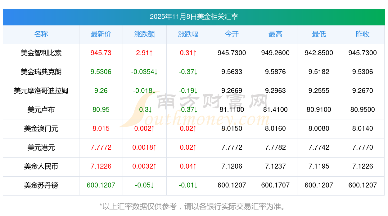 根據(jù)2025年11月8日匯率計(jì)算,美金兌換瑞士法郎匯率最新價(jià)0.805200,今開價(jià)0.8064,昨收價(jià)0.8052,最高價(jià)0.8085,最低價(jià)0.8032。