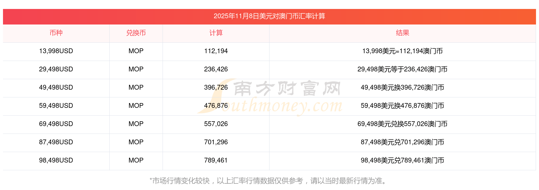 今天美元對澳門幣匯率_21美元對澳門幣匯率查詢(2025年11月8日)