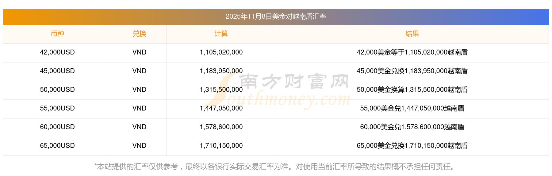 今天匯率行情:1美元兌越南幣匯率多少(11月8日)