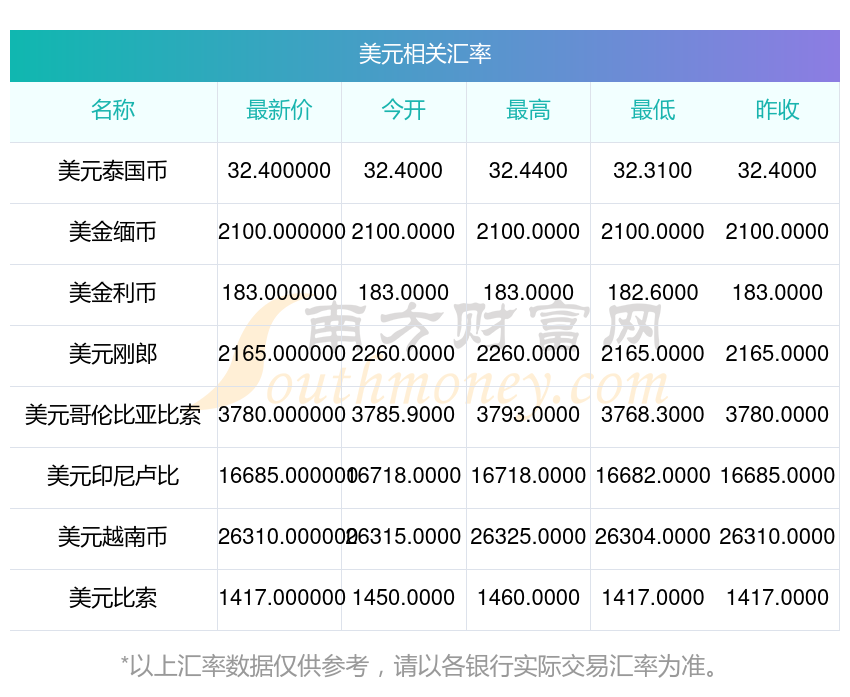 匯率數(shù)據(jù)僅供參考,交易時(shí)以銀行柜臺(tái)成交價(jià)為準(zhǔn)。