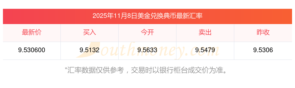 2025年11月8日美金與典幣的兌換匯率計(jì)算如下: