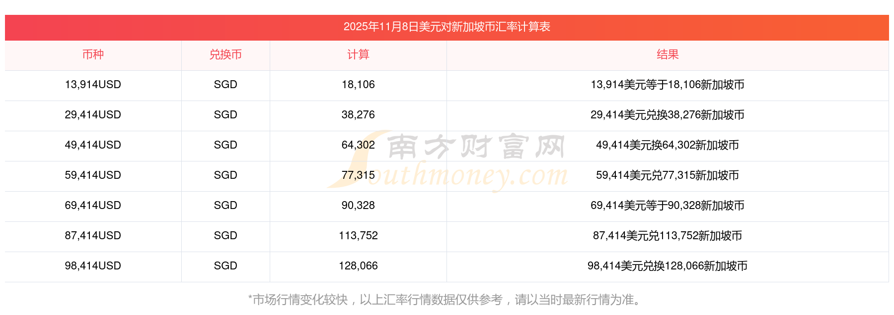 計算:用43美元換新加坡幣匯率價多少? 2025年11月8日