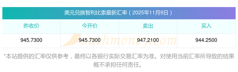 今日美元匯率:1美元等于多少智利比索?2025-11-9