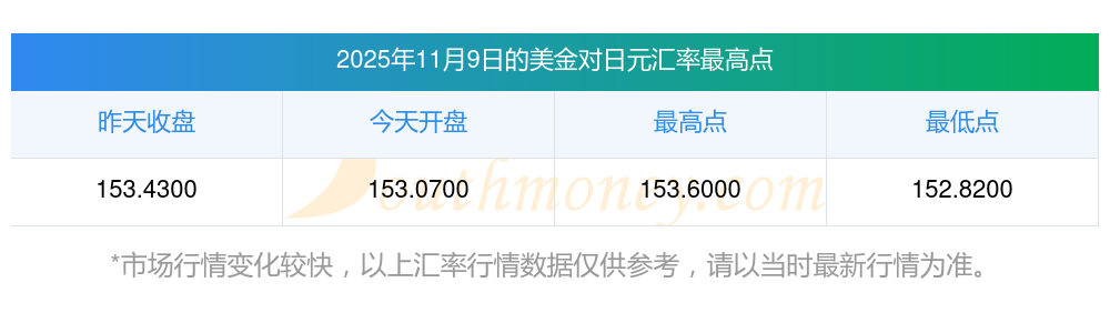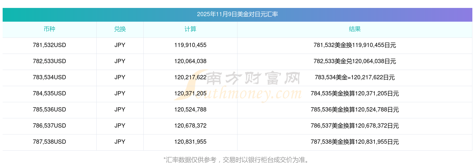 日元今日匯率實時查詢 美金對日元匯率11-09