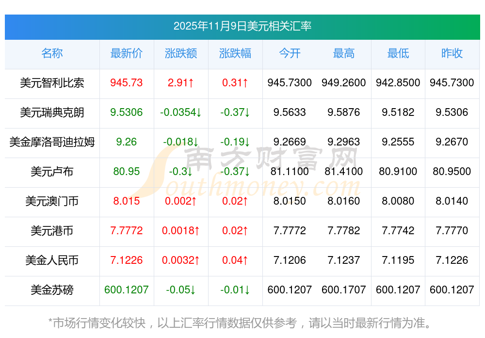 2025年11月9日美元相關(guān)匯率查詢