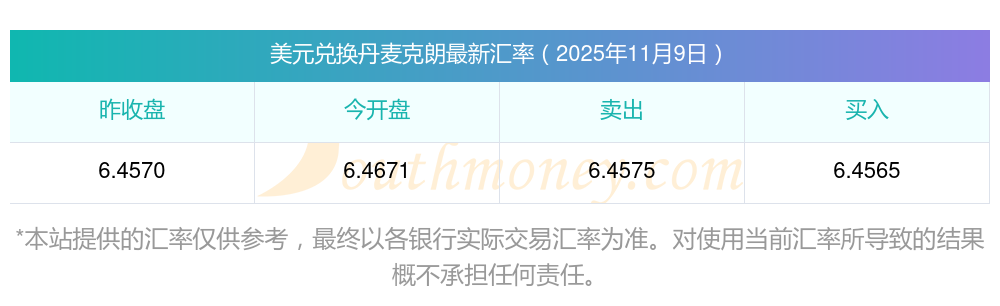 今天美元與丹麥克朗賣出價多少(2025-11-09)