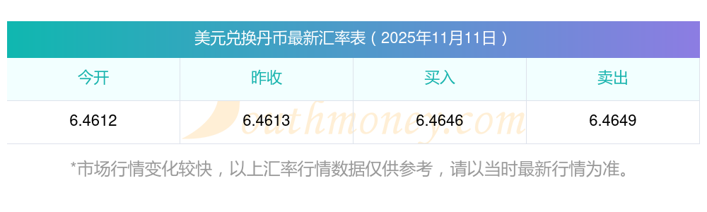 今日丹幣匯率行情:1美元兌丹幣匯率多少(2025-11-11)
