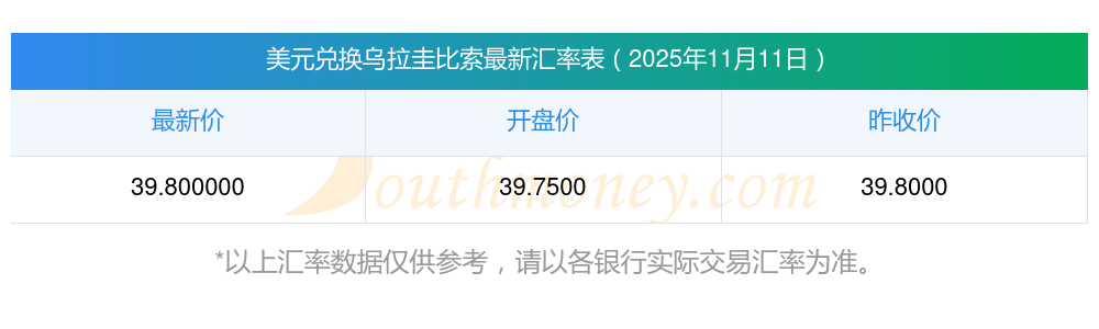 2025年11月11日美元兌換烏拉圭比索匯率是:39.8