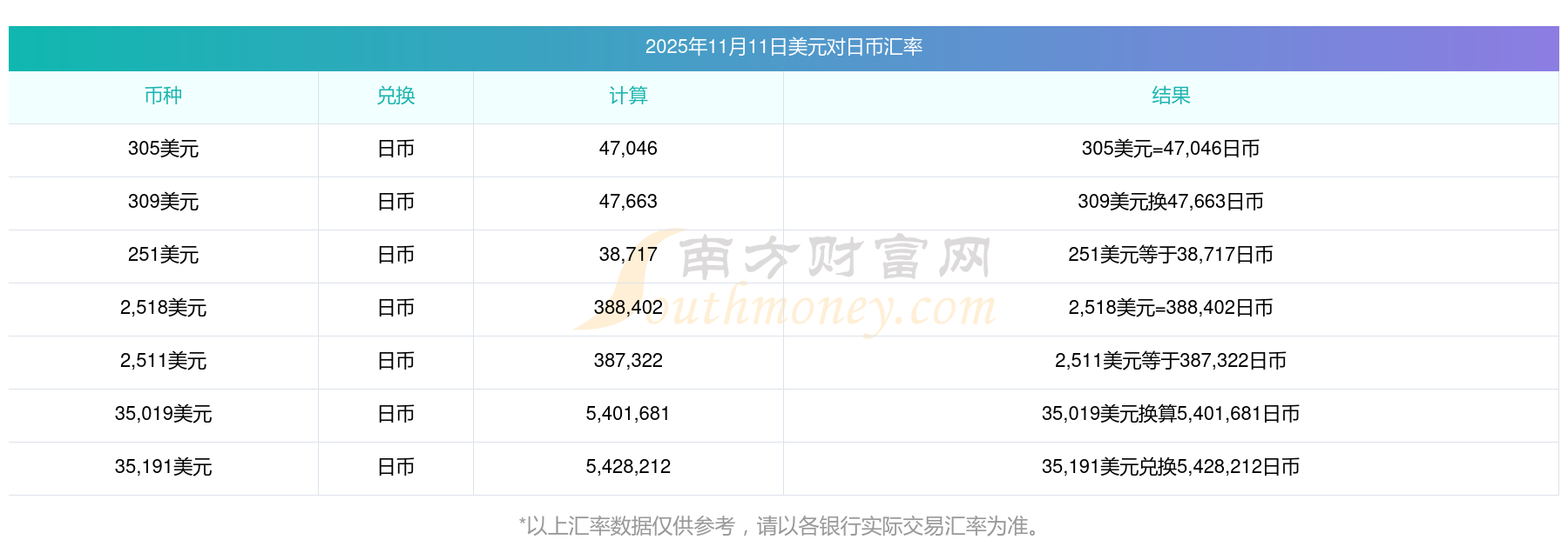 日幣今日匯率實(shí)時(shí)查詢 107美元對(duì)日幣匯率2025/11/11