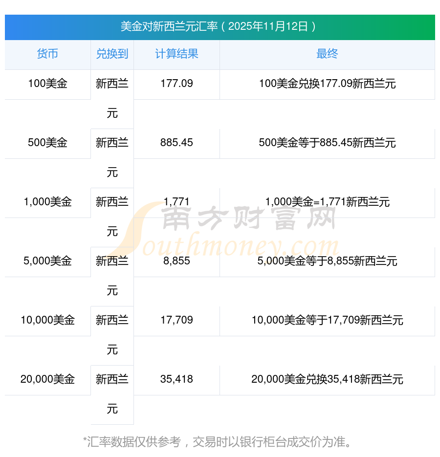 南方財(cái)富網(wǎng)為您提供美金對(duì)新西蘭元匯率最新價(jià)格詳情。