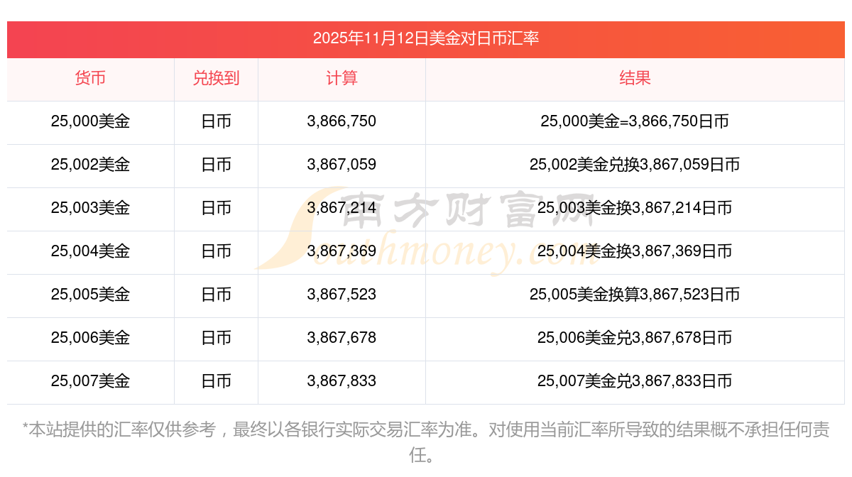日幣今日匯率實時查詢 107美金對日幣匯率2025-11-12