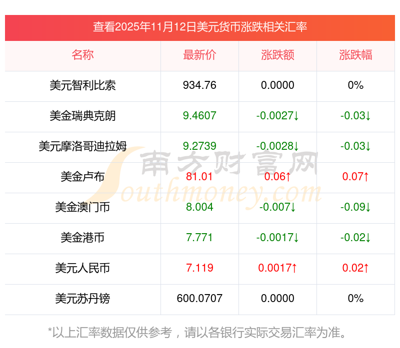 2025年11月12日美元相關匯率查詢