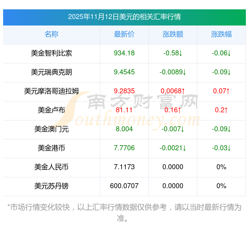 2025年11月12日美元相關(guān)匯率查詢