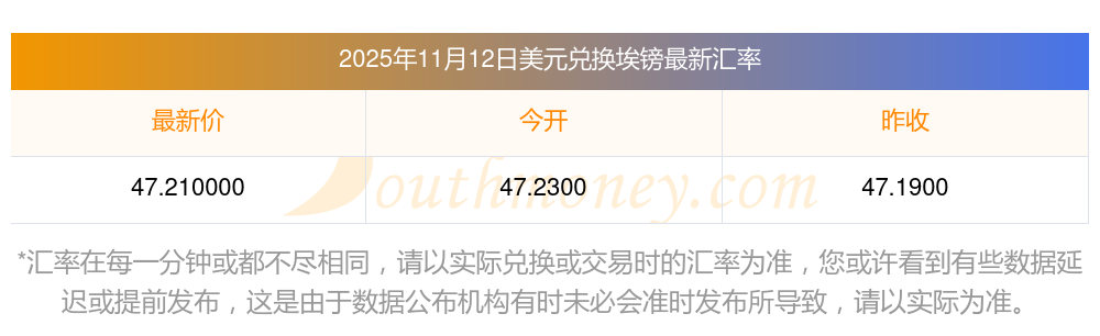 2025年11月12日美元兌換埃鎊匯率是:47.21