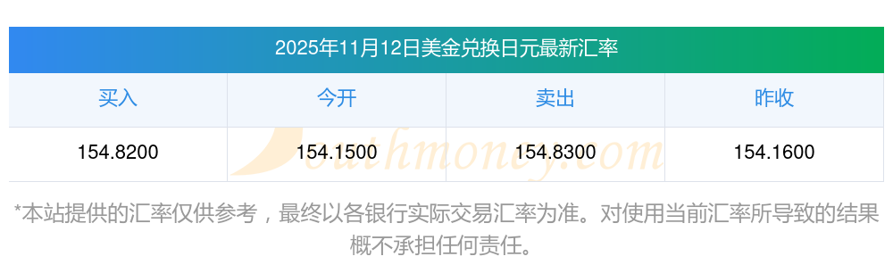 今天匯率行情:1美元兌日幣匯率多少(2025/11/12)