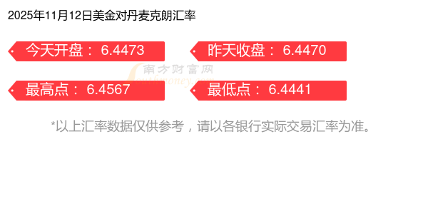 今日丹麥克朗匯率行情:1美元兌丹幣匯率多少(2025-11-12)
