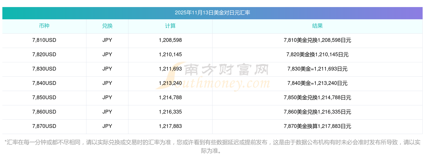 本站提供的匯率僅供參考,最終以各銀行實(shí)際交易匯率為準(zhǔn)。對使用當(dāng)前匯率所導(dǎo)致的結(jié)果概不承擔(dān)任何責(zé)任。