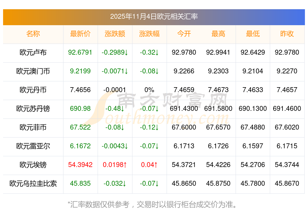 2025年11月4日歐元兌換澳幣最新匯率:1.768000,今開:1.7620,昨收:1.7620,最高:1.7689,最低:1.7601。