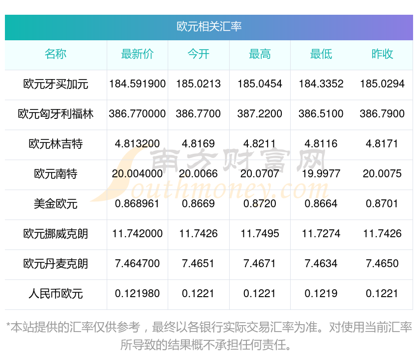 2025年11月6日歐元相關(guān)匯率查詢