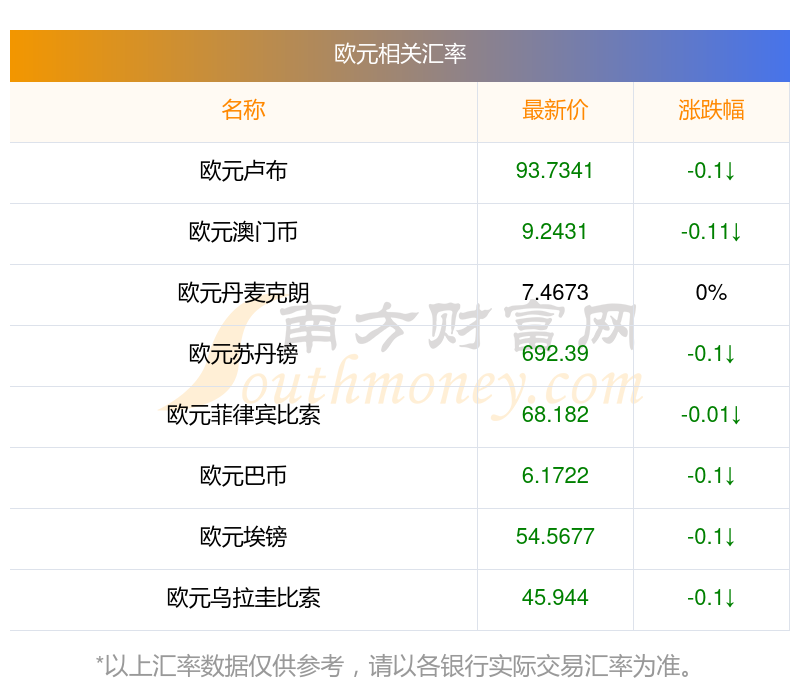 南方財富網(wǎng)為您提供歐元對波幣匯率最新價格詳情。