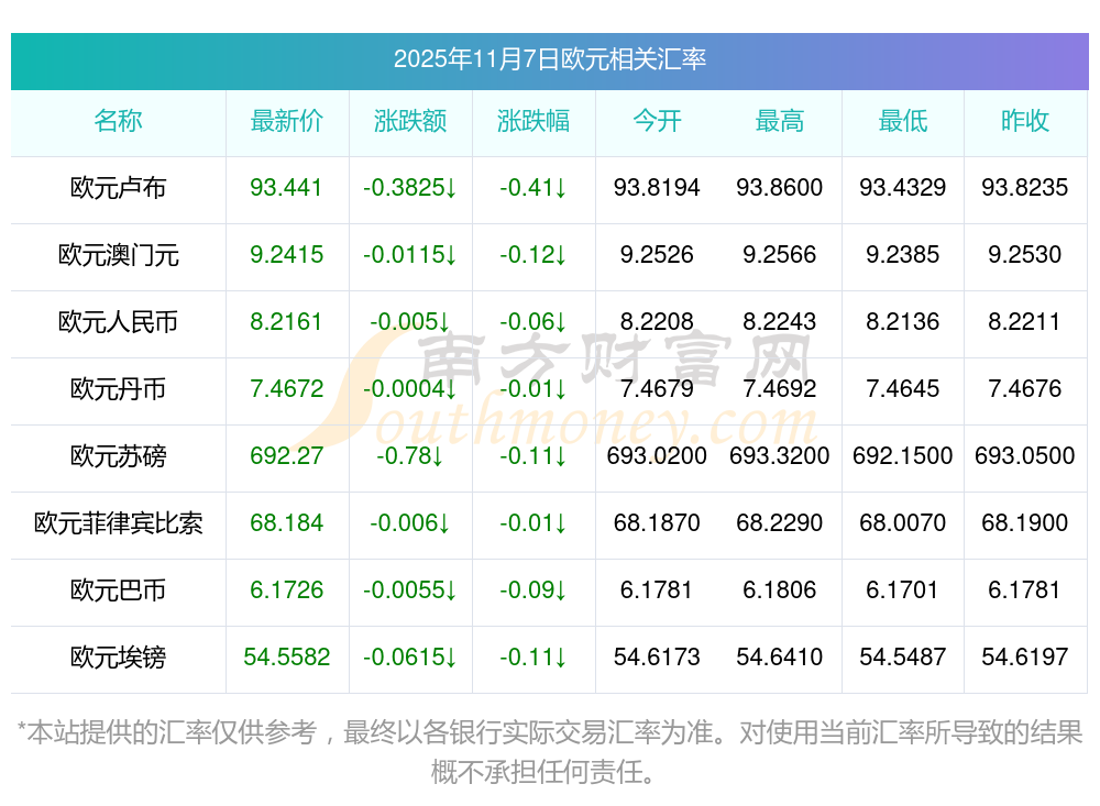 2025年11月7日歐元相關(guān)匯率查詢