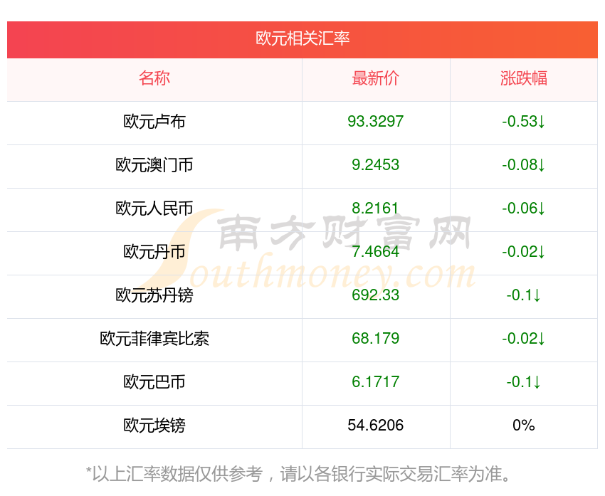 2025年11月7日歐元相關(guān)匯率查詢