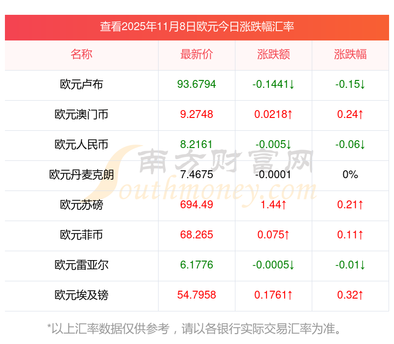 根據(jù)2025年11月8日匯率,歐元兌換新西蘭幣匯率最新價2.057900,今開價2.0496,昨收價2.0498,最高價2.0643,最低價2.0473。