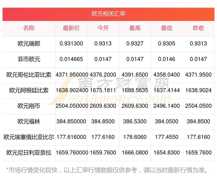 市場行情變化較快,以上匯率行情數(shù)據(jù)僅供參考,請以當(dāng)時最新行情為準(zhǔn)。