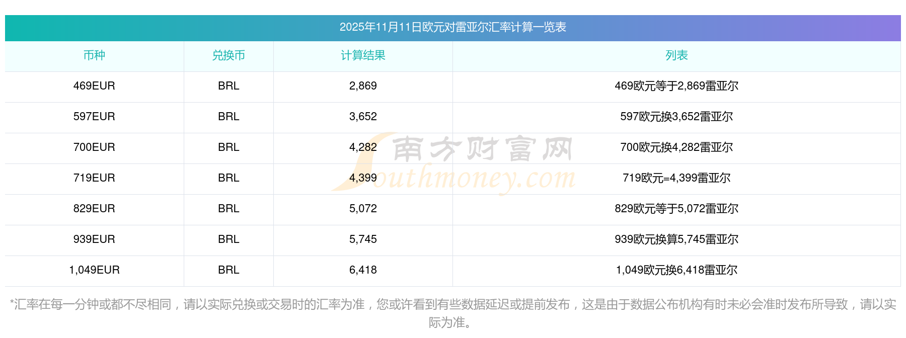 南方財(cái)富網(wǎng)為您提供歐元對(duì)雷亞爾匯率最新價(jià)格詳情。