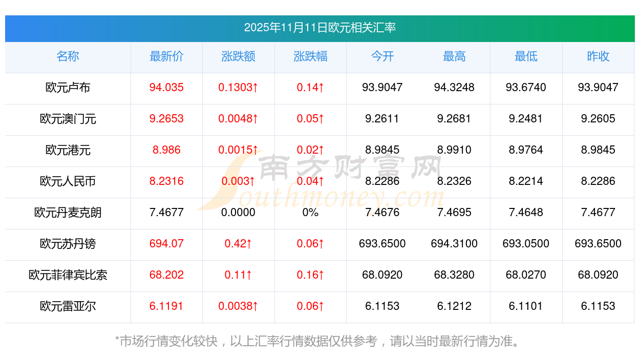 2025年11月11日歐元相關(guān)匯率查詢(xún)
