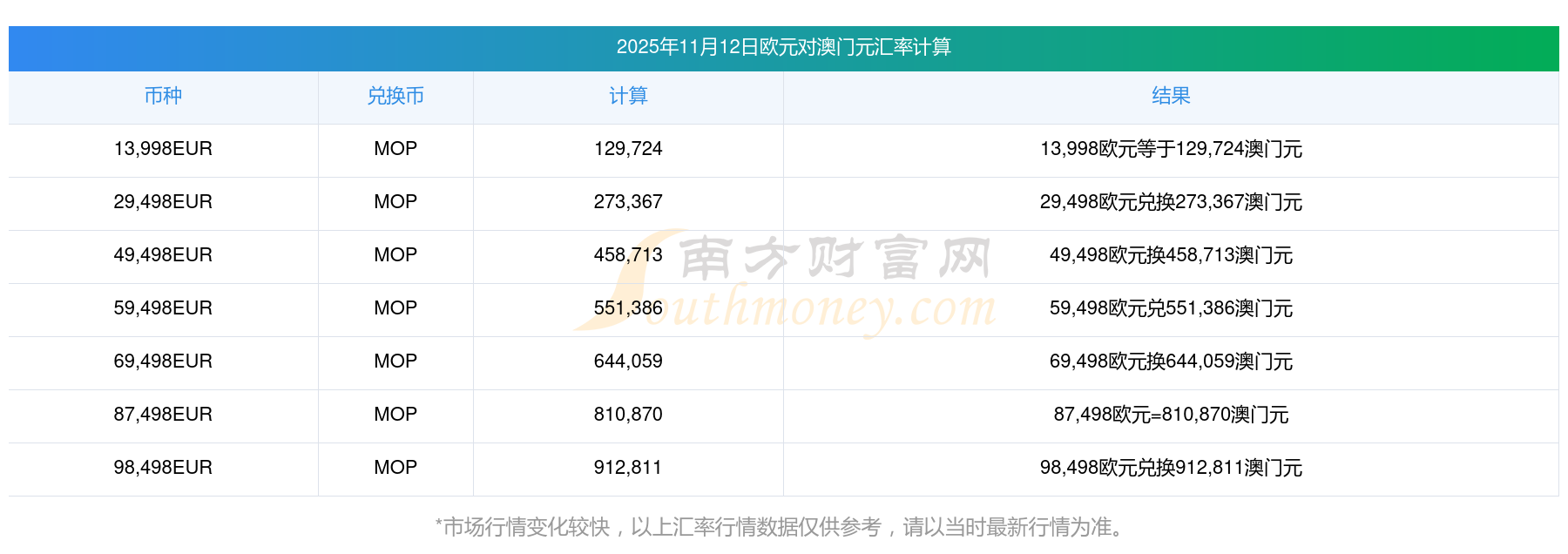 2025年11月12日歐元對(duì)澳門元匯率?