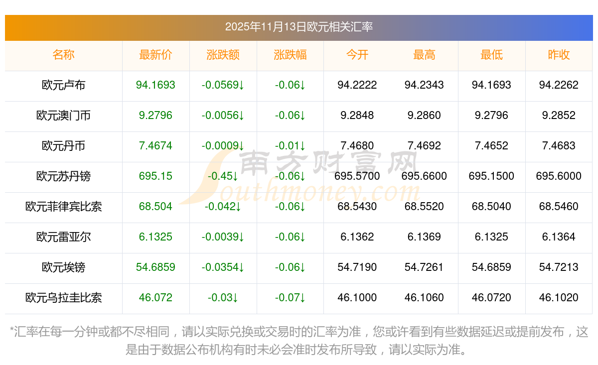 根據(jù)2025年11月13日匯率,歐元兌換英鎊匯率最新0.882900,今開0.8828,昨收0.8828,最高0.8833,最低0.8826。