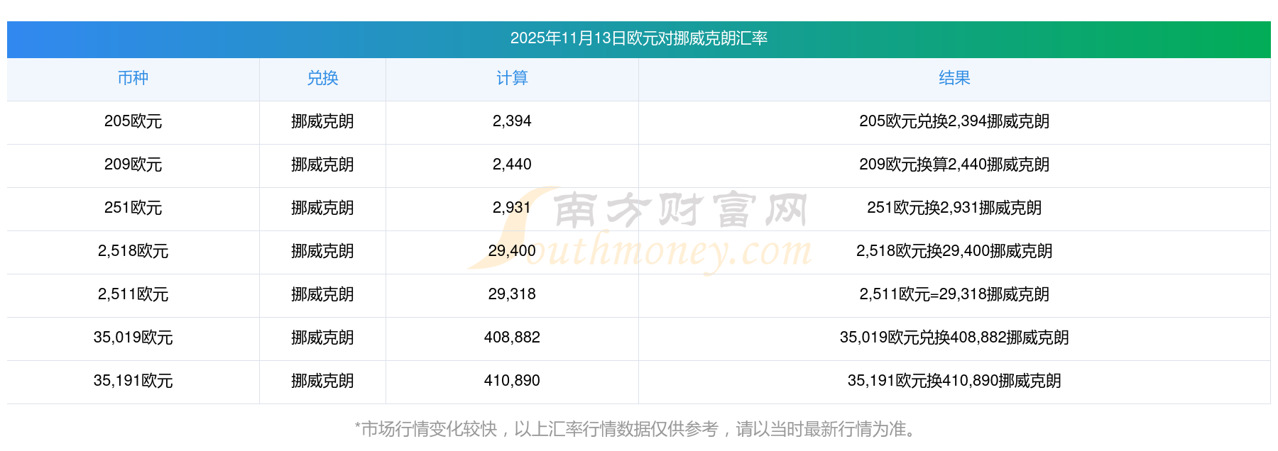 今天匯率計算:50歐元兌換多少挪威克朗的?(2025年11月13日)