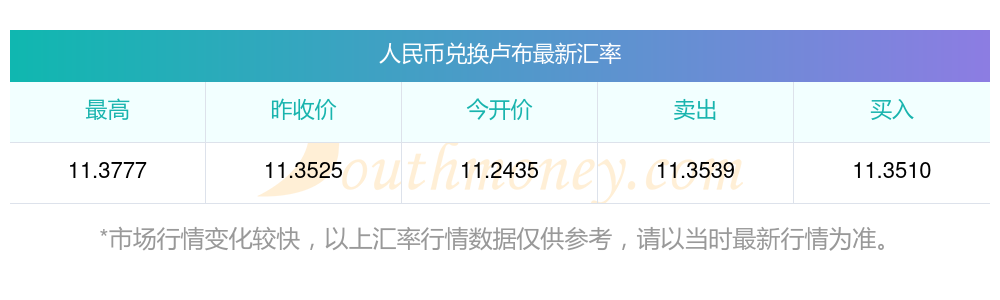 南方財(cái)富網(wǎng)為您提供人民幣對盧布匯率最新價格詳情。