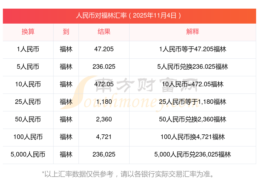 南方財富網(wǎng)為您提供人民幣對福林匯率最新價格詳情。