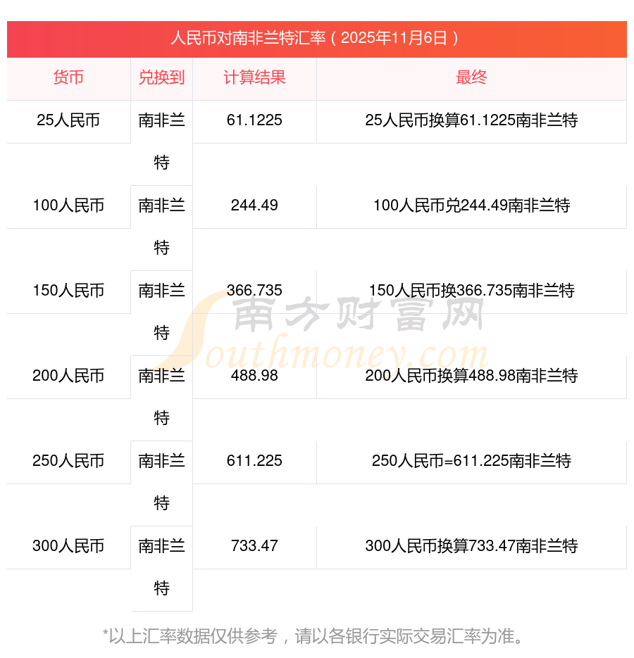 南方財富網(wǎng)為您提供人民幣對南非蘭特匯率最新價格詳情。